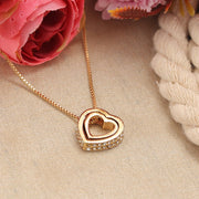Double Gold-Plated White Crystal Heart Pendant Necklace