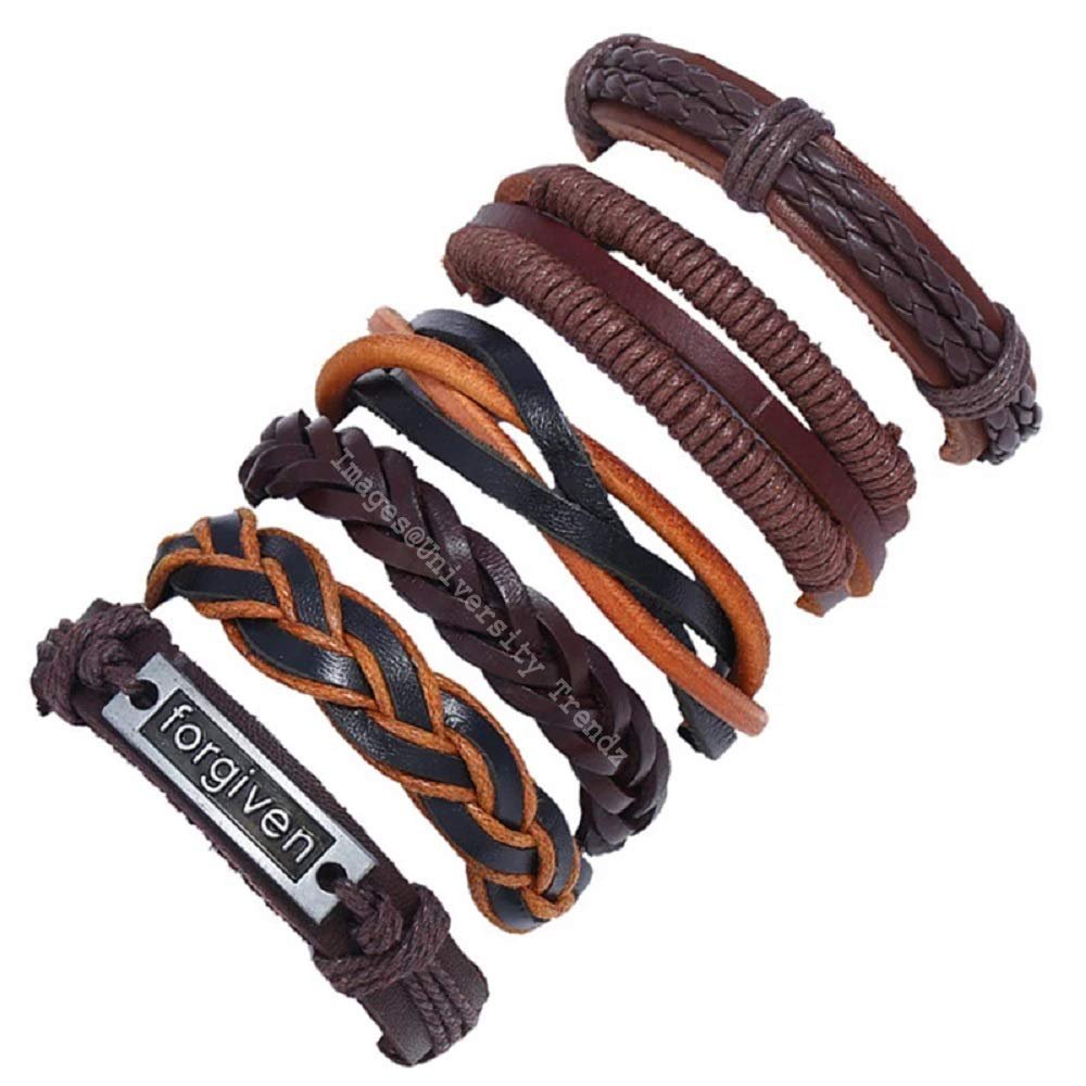 Forgiven Multi-Color Cuff Leather Bracelets Wrap (Set of 6)