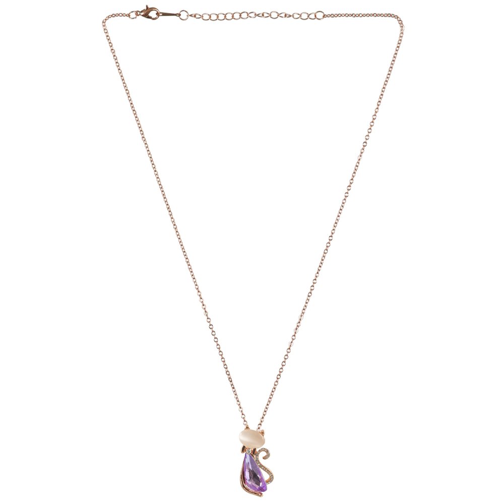 Gold-Plated Cat Style Crystal Purple Studded Pendant Necklace