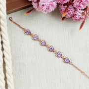 Gold-Plated Contemporarty Purple Hearts Chain Charm Bracelet for Women & Girls