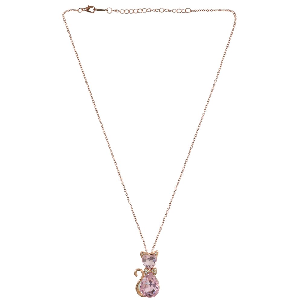 Gold-Plated Light Pink Crystal Cat Pendant Necklace