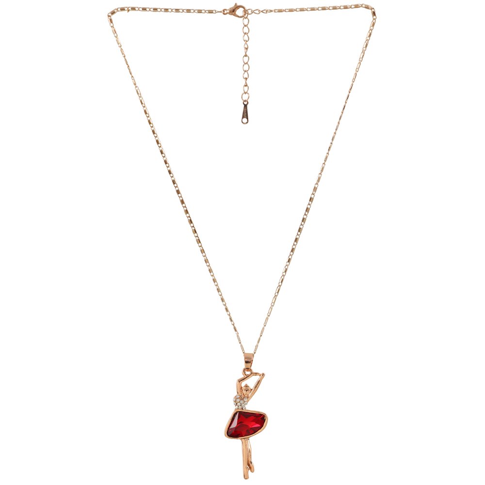 Gold-Plated Red Crystal Dancing-Doll Penadnt Necklace