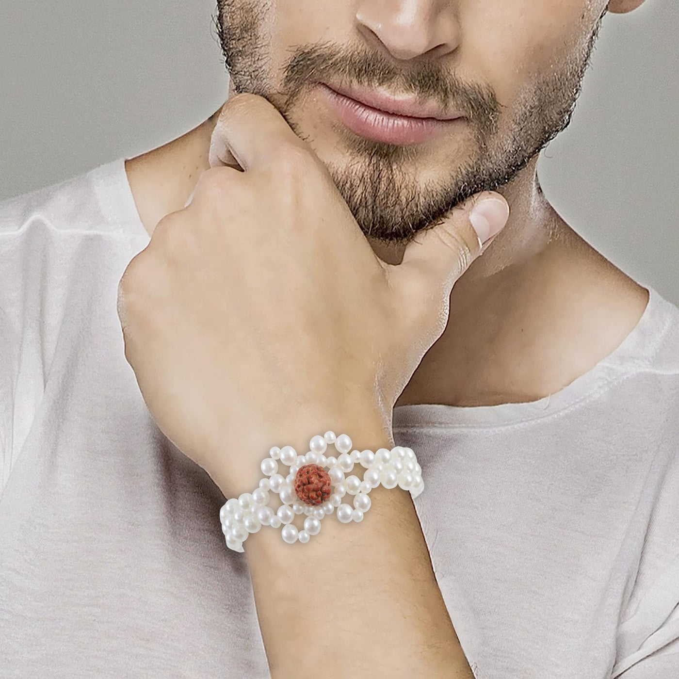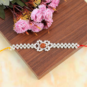 Handcrafted Pearl & Rudraksh Rakhi-Bracelet