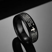 Men's Black Cross Ring with Lord's Prayer Engraving