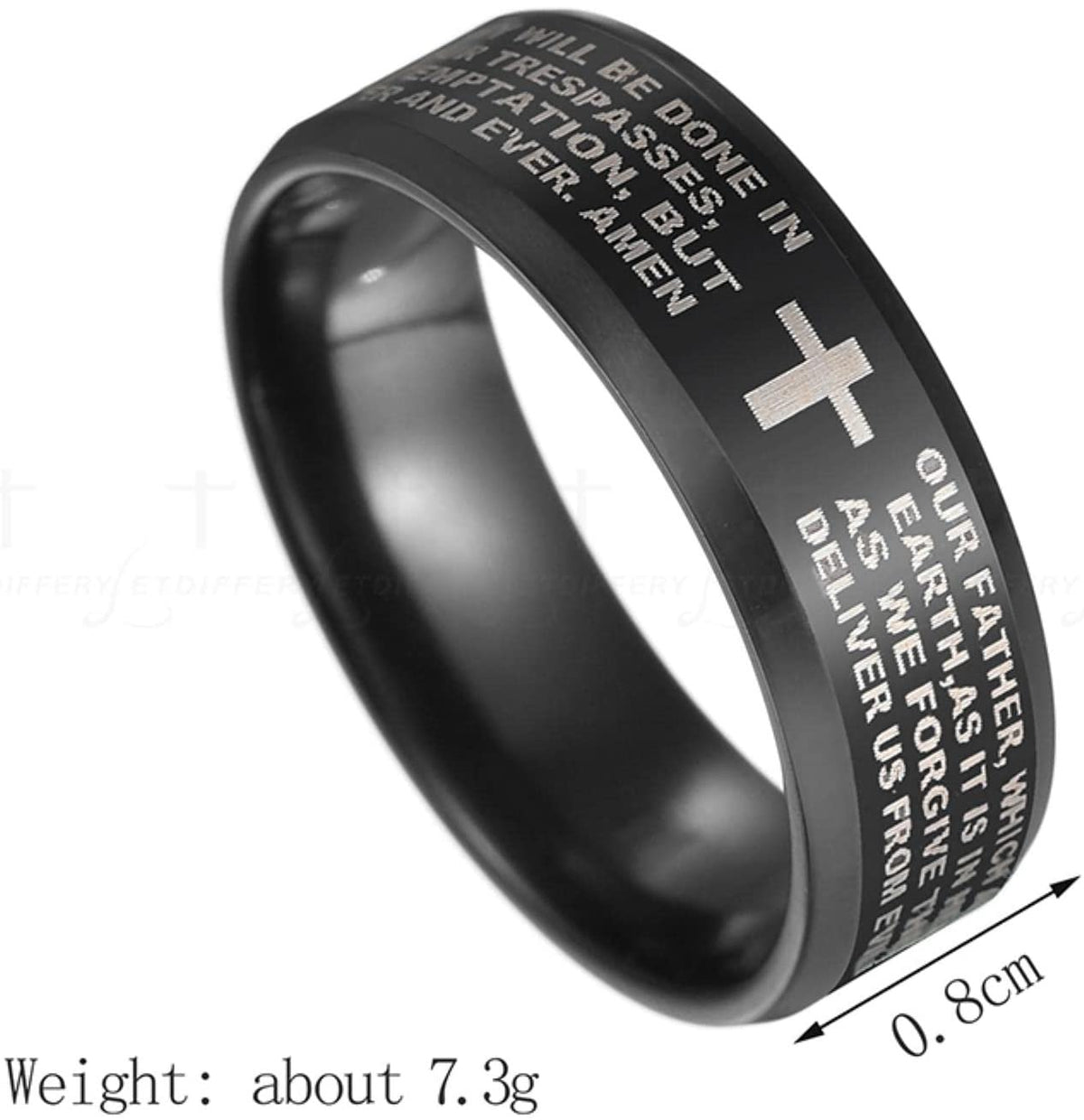 presents a Men's Black Cross Ring with a special engraving of the Lord's Prayer, perfect for those with a strong...