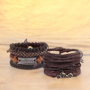 Elevate your accessory game with our Men's Set Of 2 Leather Multistrand Bracelet Combo. Crafted from high-quality leather, these bracelets...