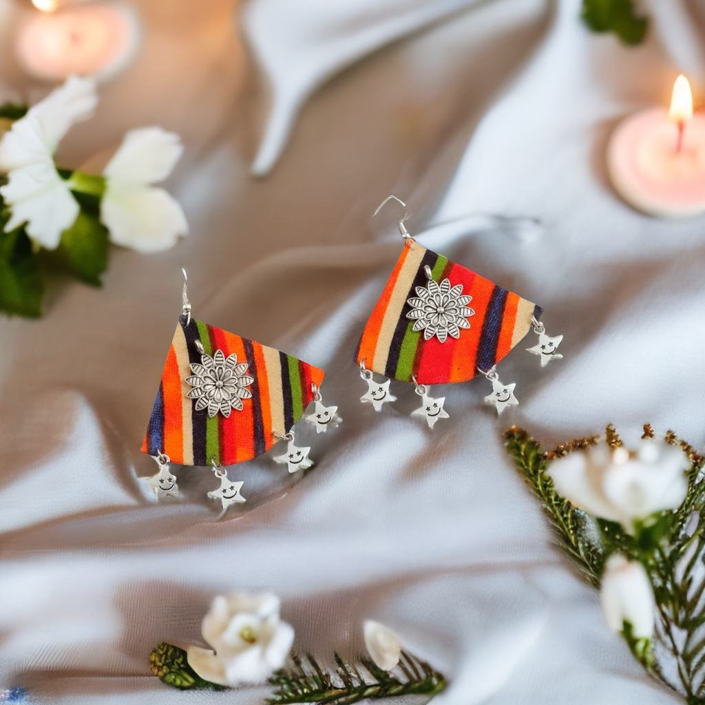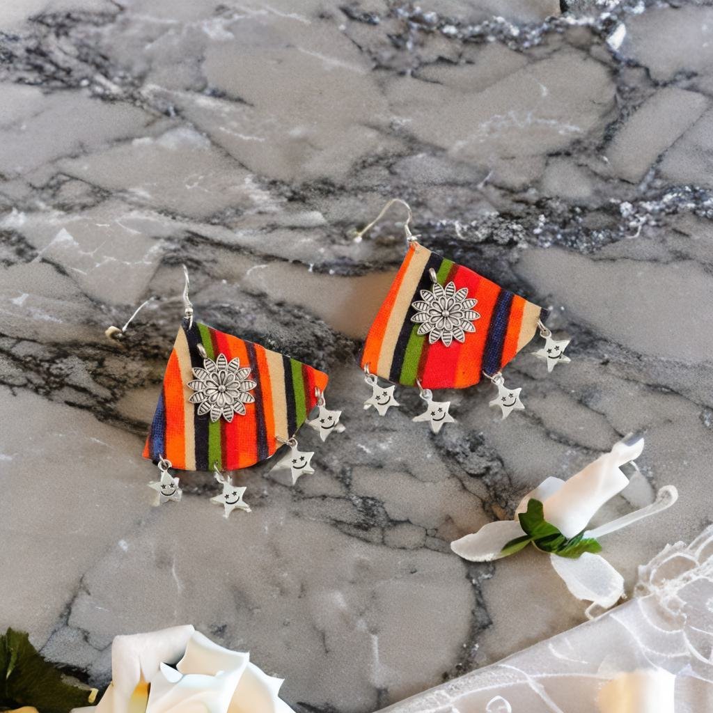 Boho Handcrafted Multicolor Fabric Dangler Earrings