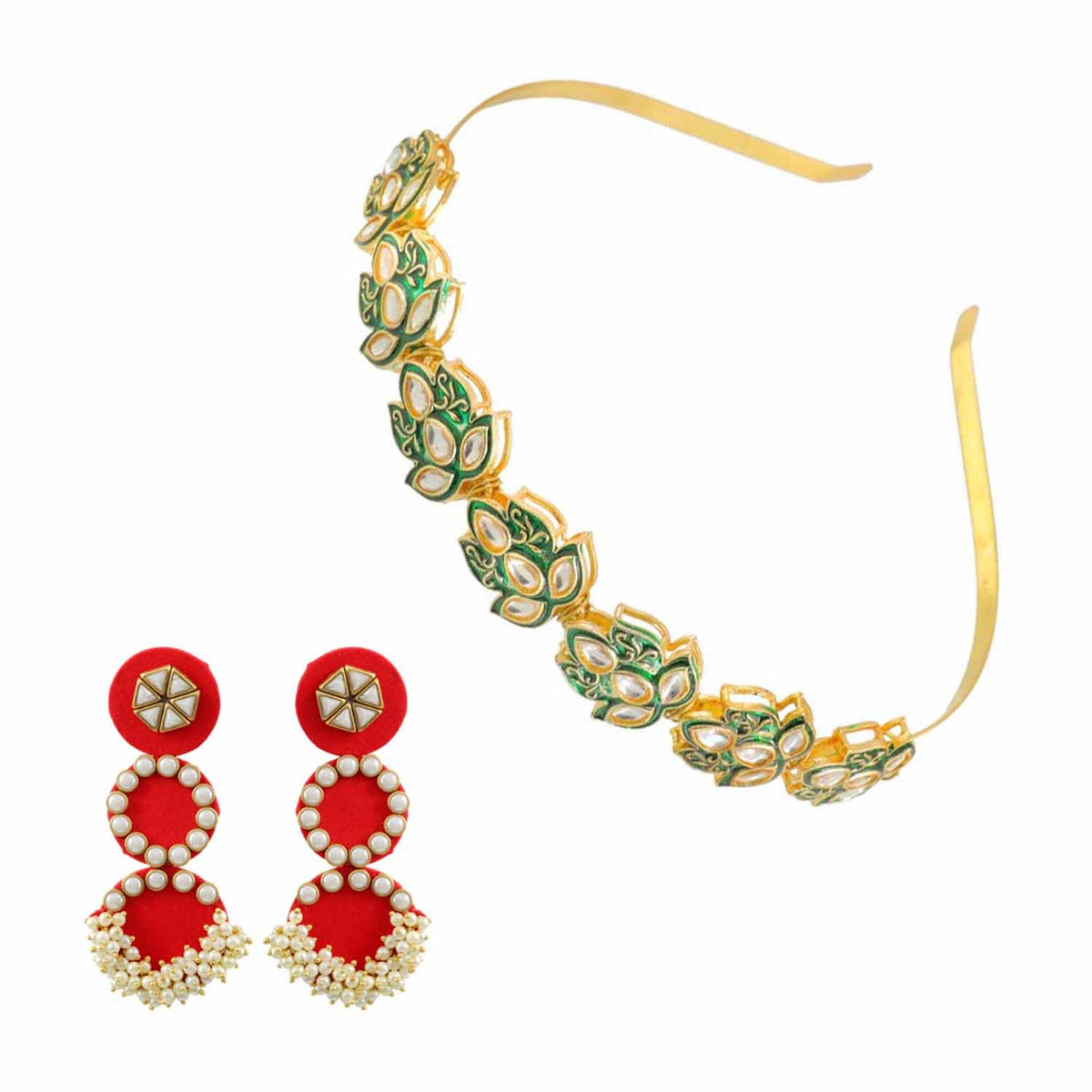 Ethnic Lotus Mathapatti Hairband and Earrings Set