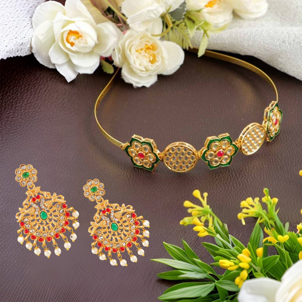 Ethnic Mathapatti Hairband and Earrings Set