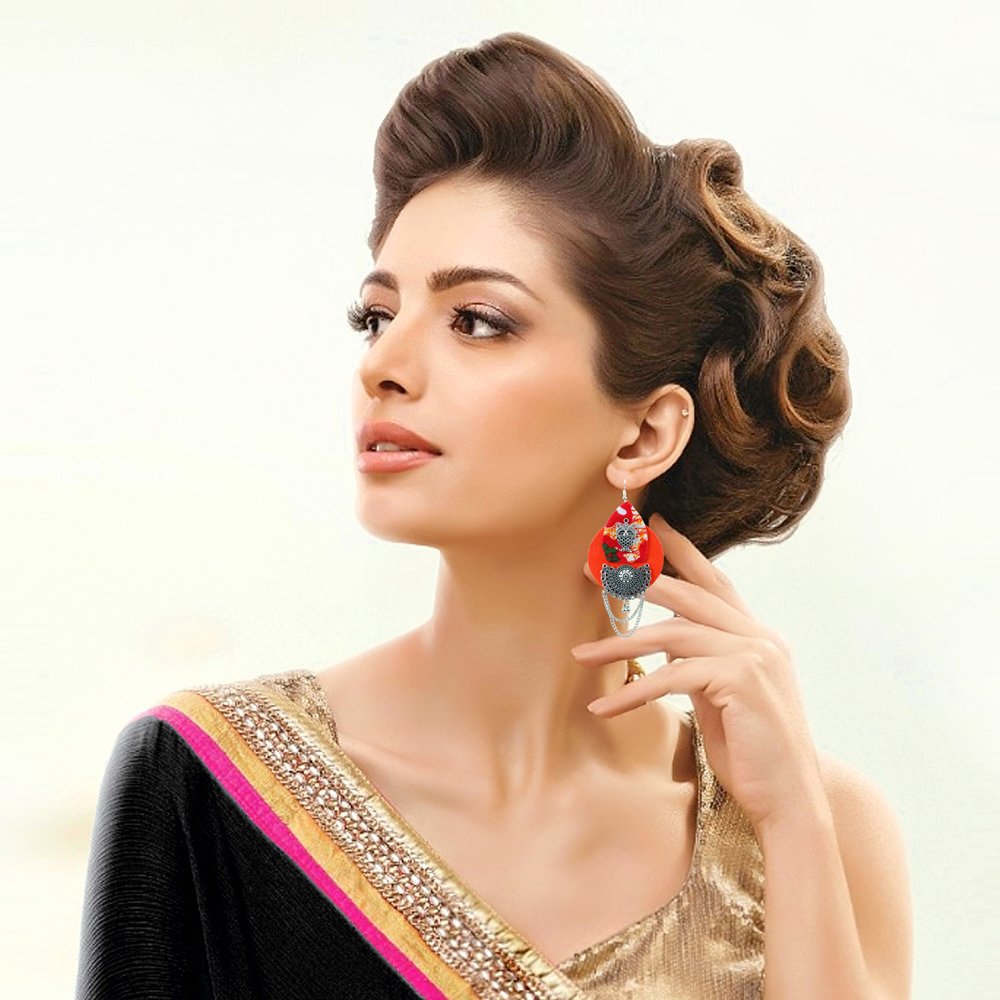 Step into a world of whimsy with our Whimsical Wisdom Handcrafted Orange Fabric Oxidised Metal Owl Pattern Dangler Earrings. These...