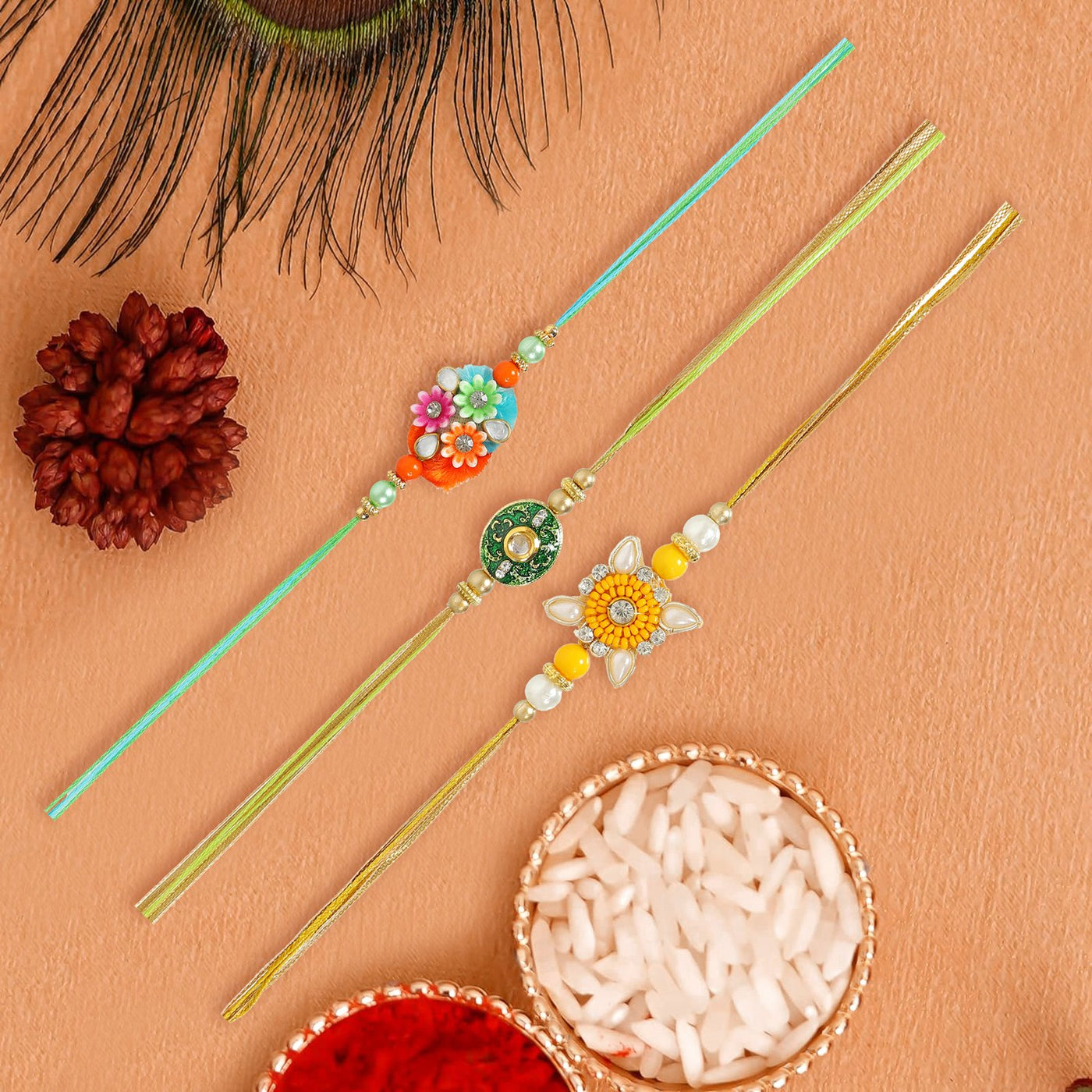 Kundan Beaded Rakhi Set of 3 Combo for Brother