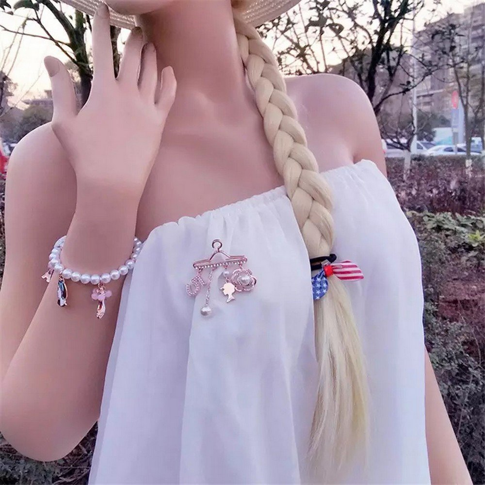 Gold-Plated Faux Pearl Hanger Dangle Brooch Pin for Women/Girls