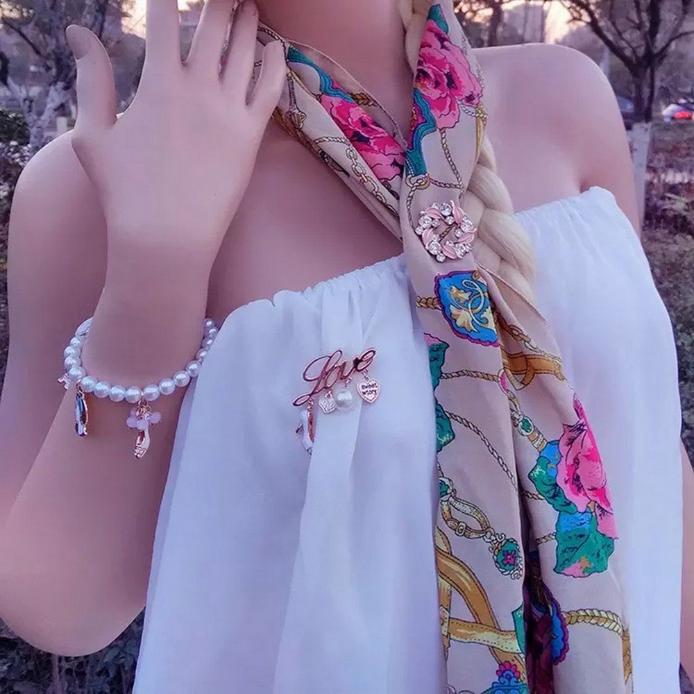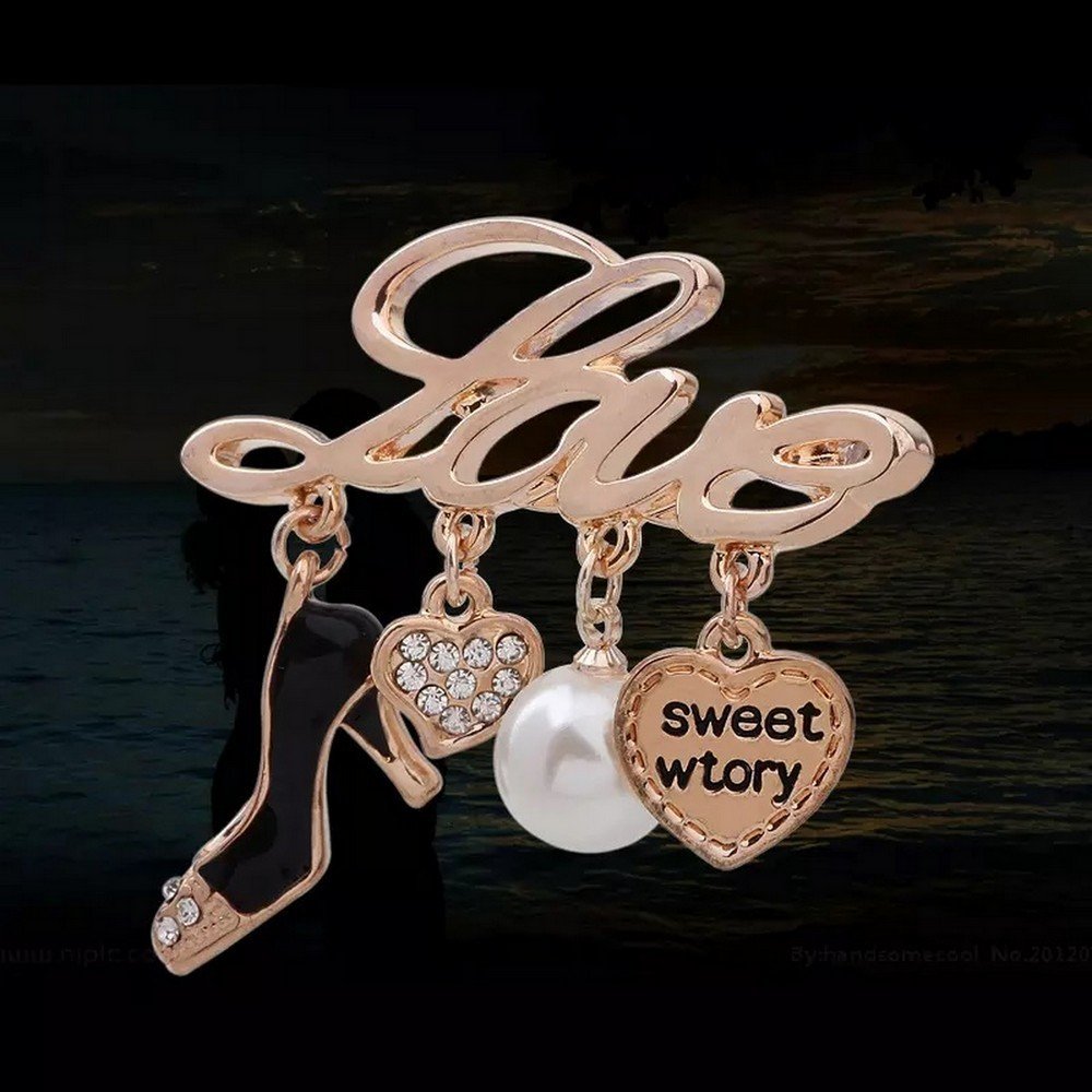 Gold-Plated Tassel Pearl/Heel Heart Love Brooch for Women/Girls