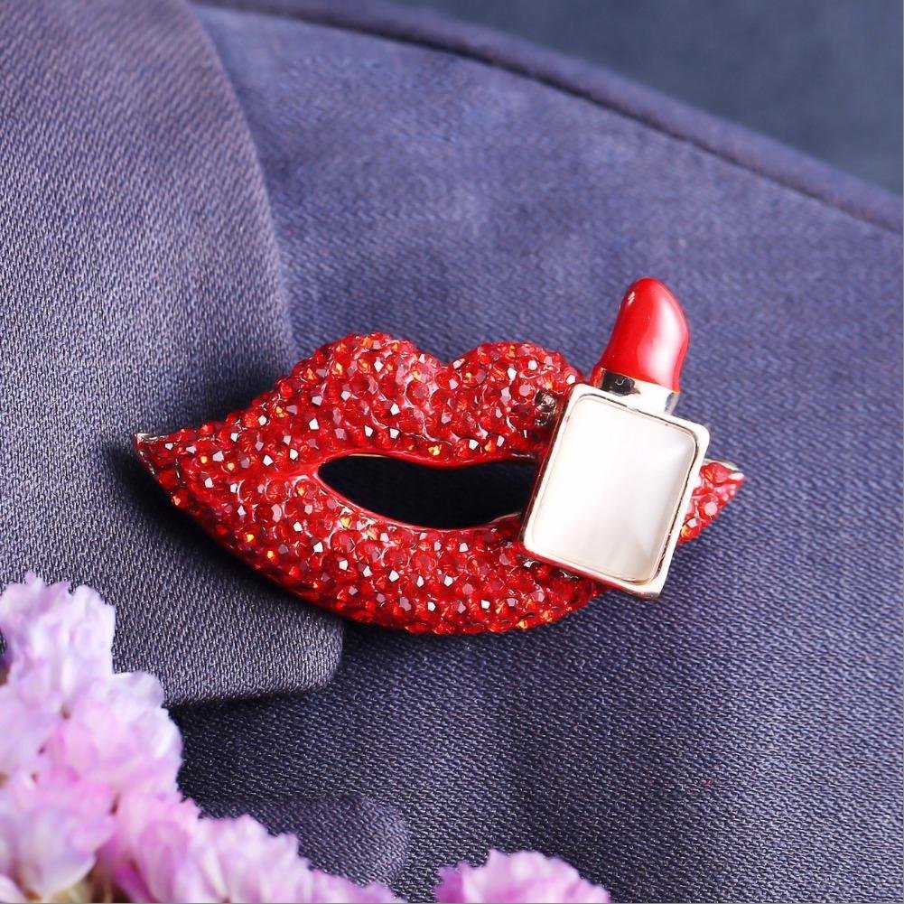 Hot Red Lips Lipstick Brooch For Women/Girls