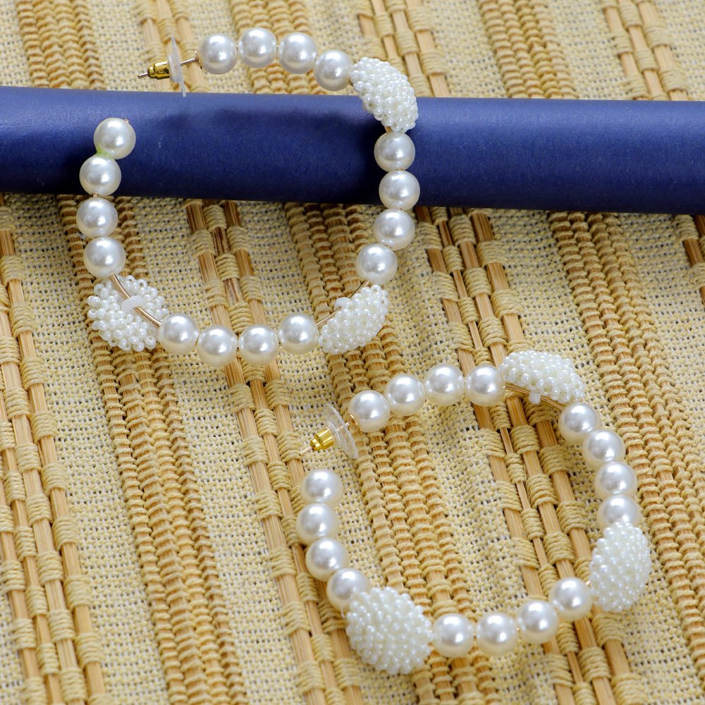Add a touch of elegance and modernity to your jewelry collection with these Gold-Plated Pearl Studded Geometric Half Hoop Earrings...