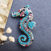 Introducing the elegant Silver-Plated Blue Crystal Sea Horse Brooch ? a symbol of aquatic elegance and charm that adds a...