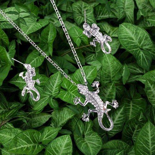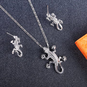 Silver-Plated Crystal Lizard Necklace & Earrings Set