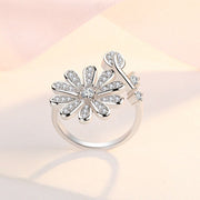 Silver-Plated Crystal-Studded Adjustable Finger Ring