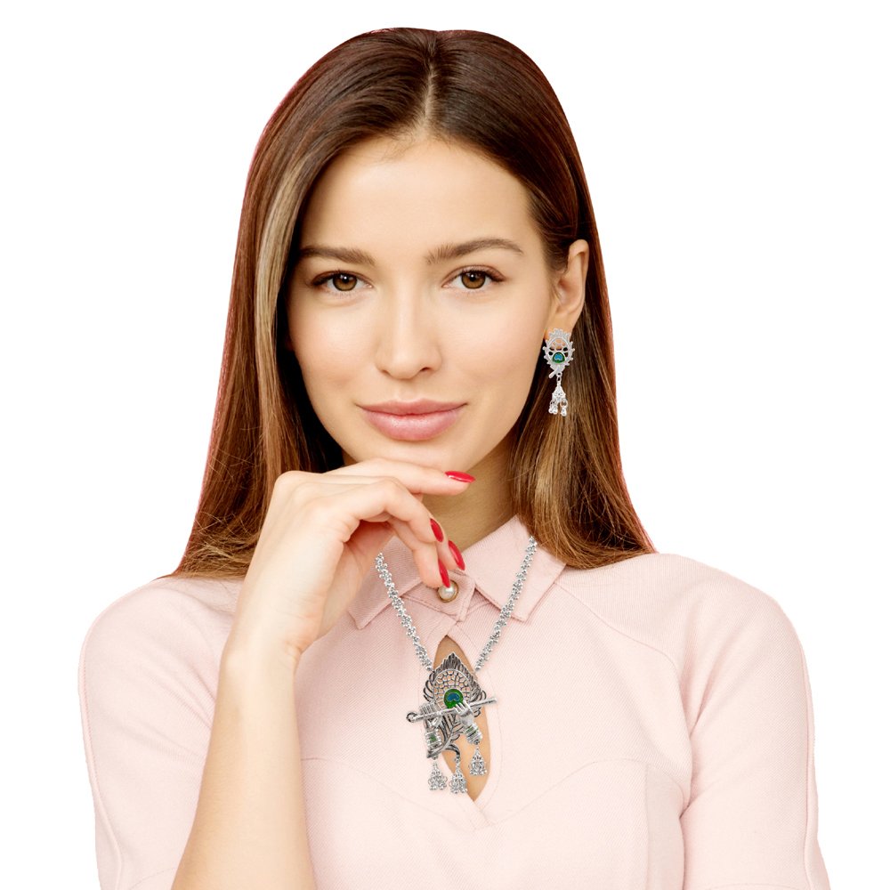 Silver-Plated Radha-Krishna Flute Bansuri Jewellery Set