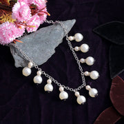 Elegance Refined: Silver-Plated White Pearl Necklace for Women/Girls