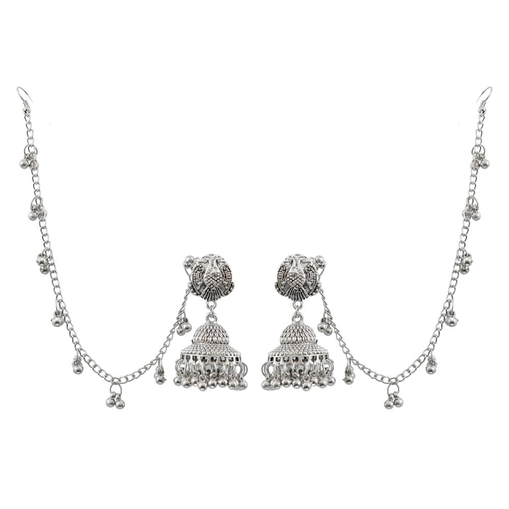 Traditional Silver-Plated Earchain Jhumka Earrings