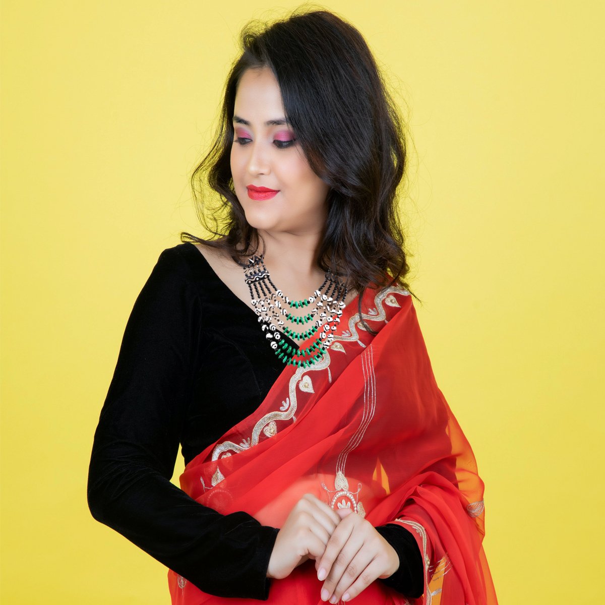 Our jewellery is premium imitation jewellery made with high-quality gold plating. It offers a real gold look and long-lasting shine at an affordable price.
